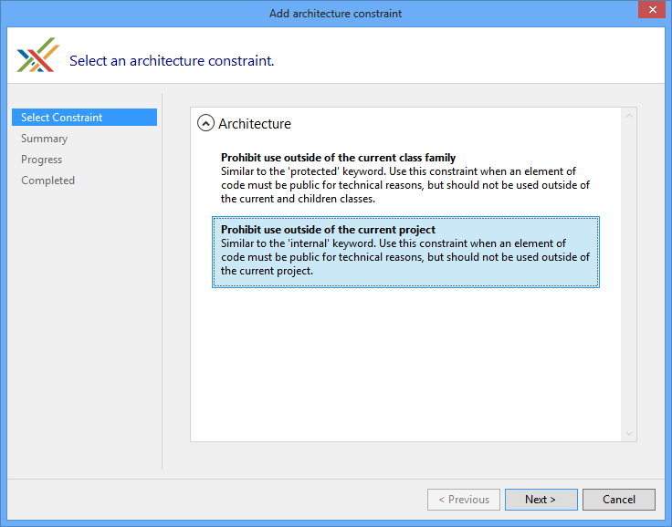 internalclass that should have restricted access. Select "Add architectural constraint..." from the smart tag options.