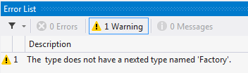 Now if you compile the project you will see a warning in the Output window of Visual Studio when you run a build.