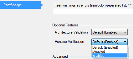 In the Optional Features section there is a Runtime Verification dropdown. The dropdown has three options in it;